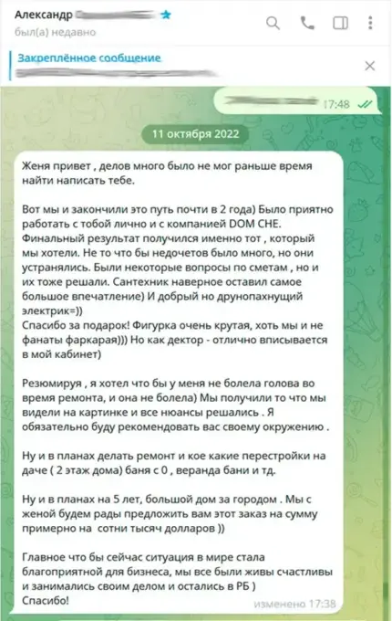 Срок обработки персональных данных является неограниченным. Пользователь может в любой момент отозвать свое согласие на обработку персональных данных, направив Оператору уведомление посредством электронной почты на электронный адрес Оператора dom.che.design@gmail.com с пометкой «Отзыв согласия на обработку персональных данных».